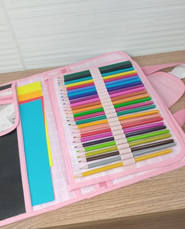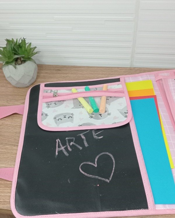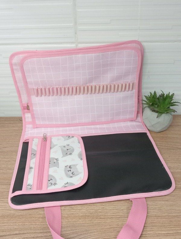 Solapa con elásticos de un lado, bolsillo en cristal del otro.
